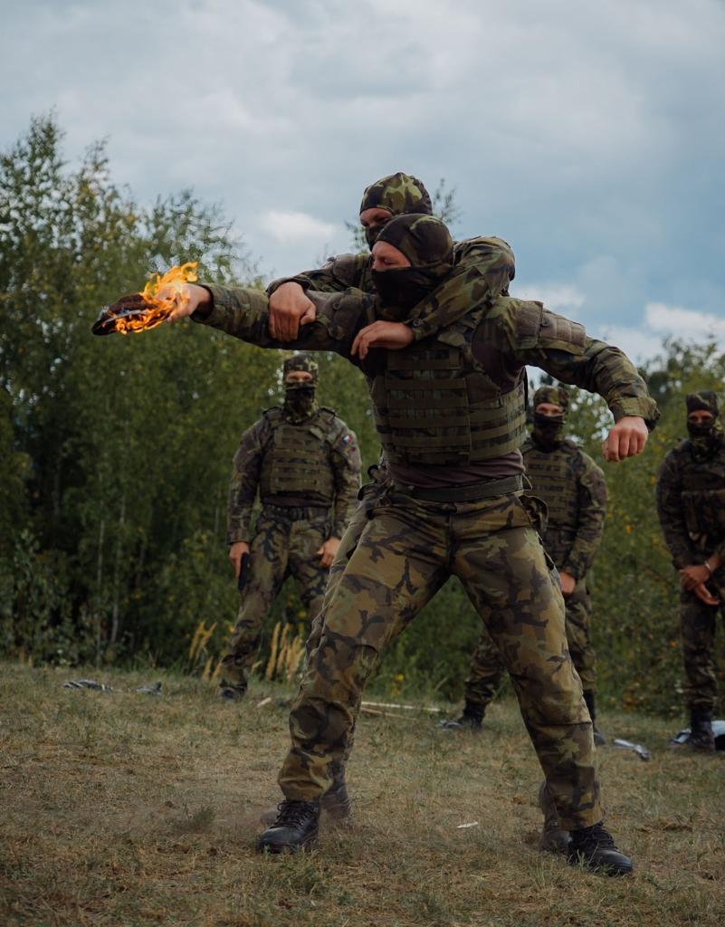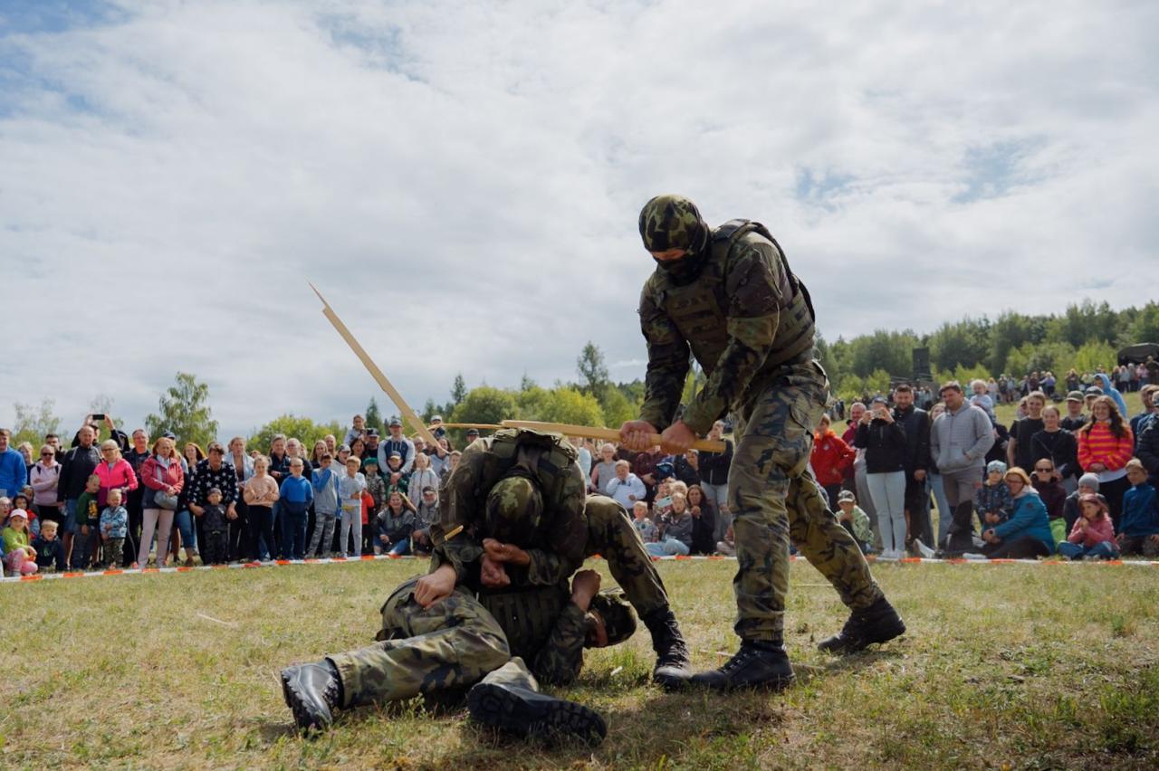 Na zemi pak dominovala Vojenská policie se svými služebními psy, kteří reagovali na povely s neuvěřitelnou přesností. Kynologové ukázali, jak důležitou roli hrají čtyřnozí parťáci v ochraně a zásazích. Vrcholem pozemních ukázek byl boj zblízka v podání vojáků z 13. dělostřeleckého pluku - energická, precizní a strhující demonstrace, která si vysloužila bouřlivý potlesk a obdiv nejen od dětí.