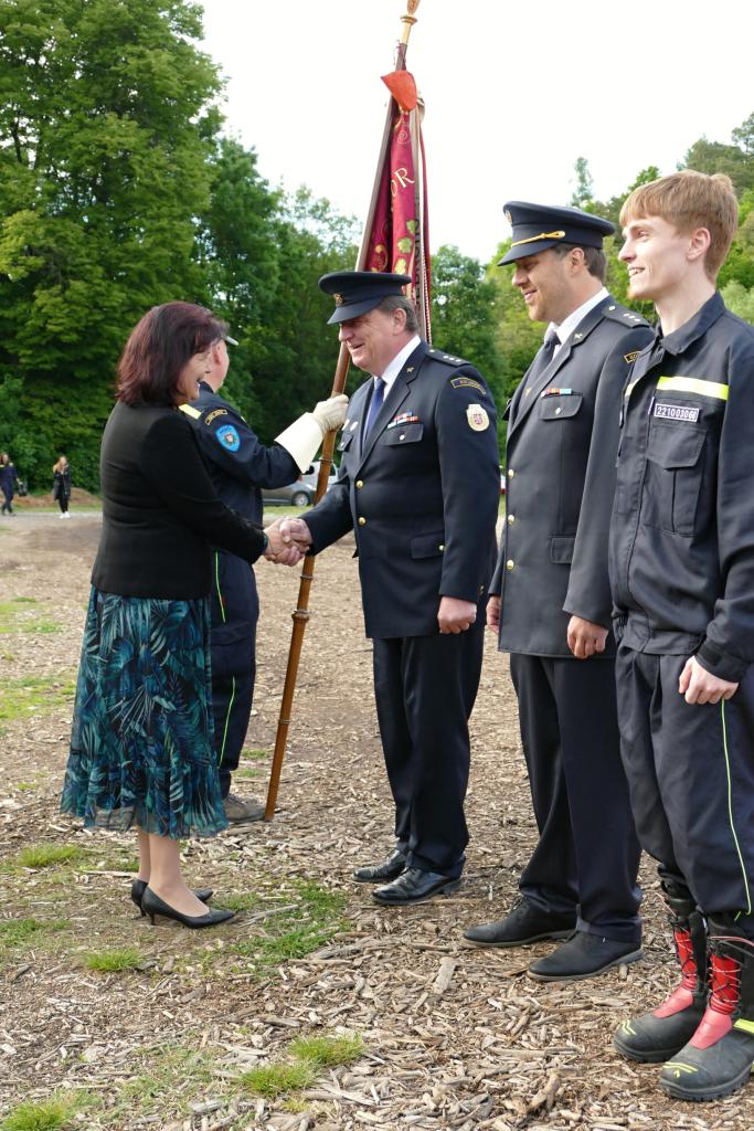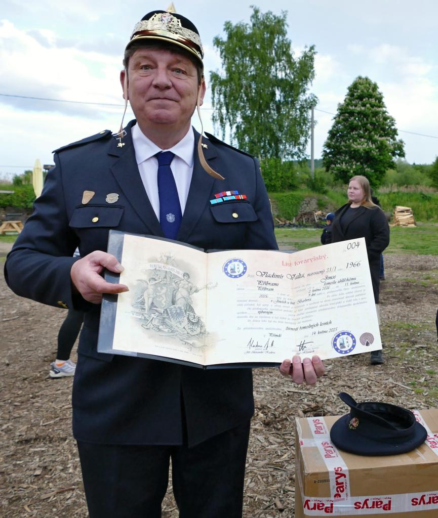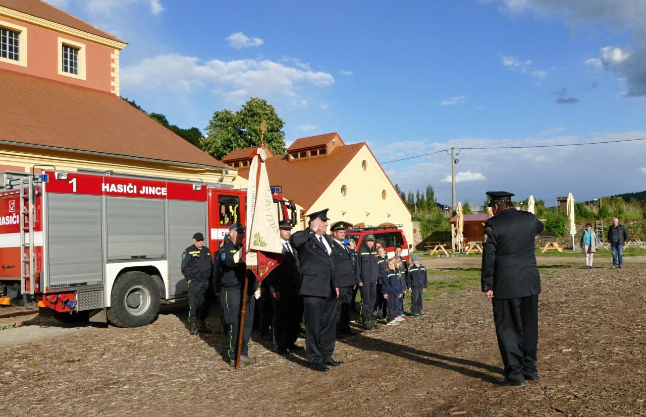 Slavnostní nástup hasičů u hutě Barbora u příležitosti jmenování nového velitele JSDH Jince a jeho zástupce. Po Vladimíru Valtovi funkci převzal David Kunz a zástupcem je René Kenardžiev. Ceremoniál řídil starosta SDH Jince Jan Krnáč a jmenovací dekrety předala paní starostka městyse Jince Miroslava Tichá s místostarostou Alešem Hlaváčkem. Vladimír Valta obdržel "List tovaryšský" za úspěšné složení zkoušky z řemesla uhlířského.