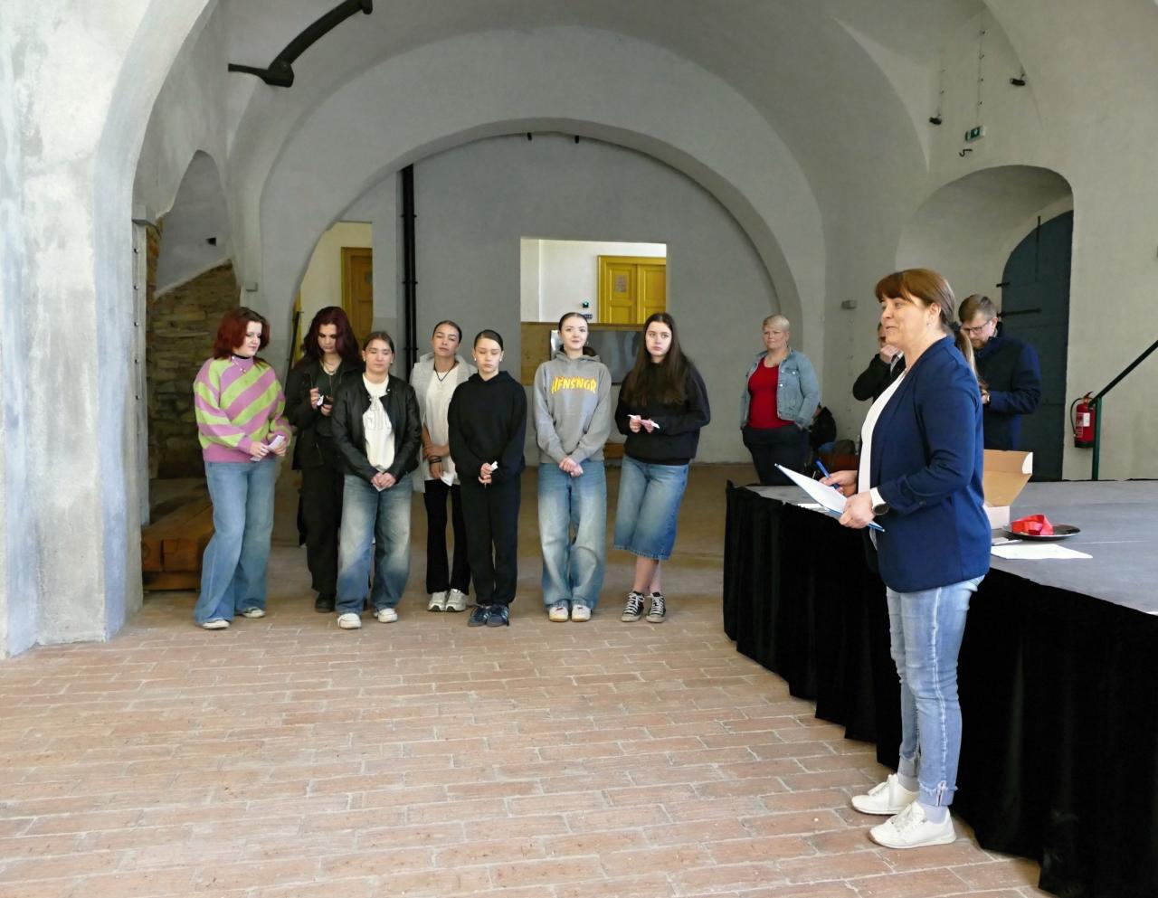 Projekt vymyslely žákyně 2. ZŠ Hořovice a hru zahájil místostarosta městyse Jince Aleš Hlaváček s učitelkou Ivanou Chocholovou.