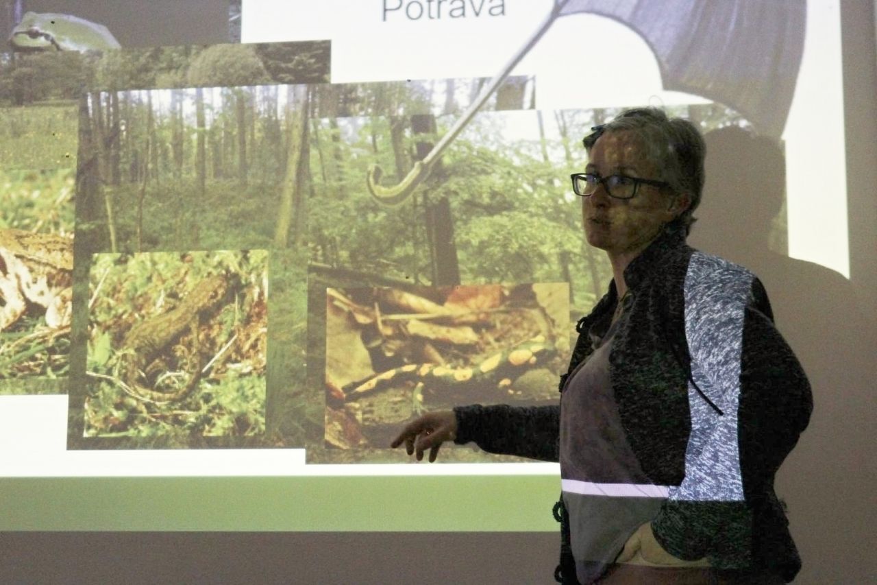 V úvodní krátké přednášce seznámila s podmínkami života obojživelníků v Brdech Jana Fischerová z Agentury ochrany přírody a krajiny České republiky. Své poutavé vyprávění doplnila promítáním snímků jednotlivých druhů žijících v Brdech i charakteristického prostředí, v něm je můžeme nejčastěji spatřit.