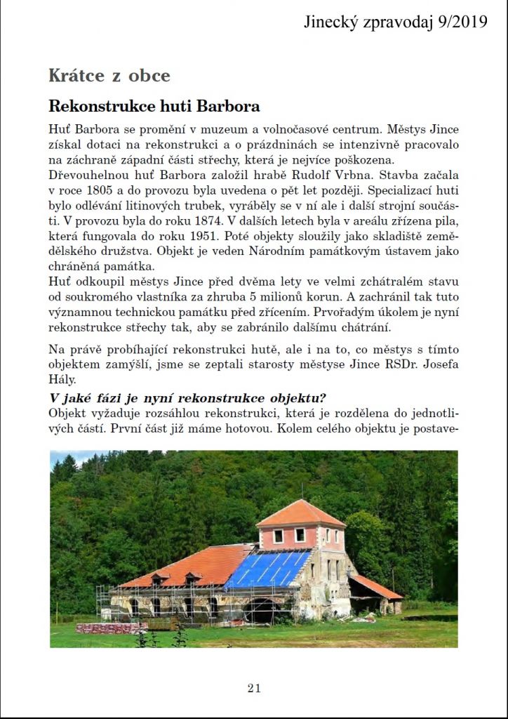 Jinecký zpravodaj 9/2019 - aktuálně o huti Barbora