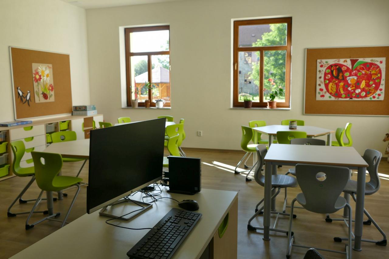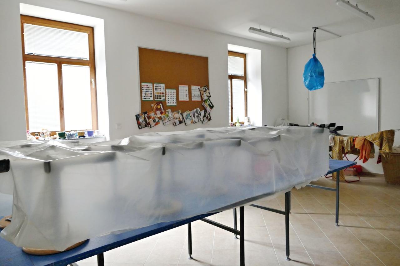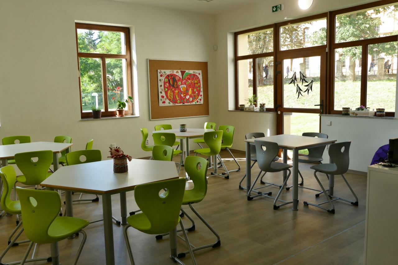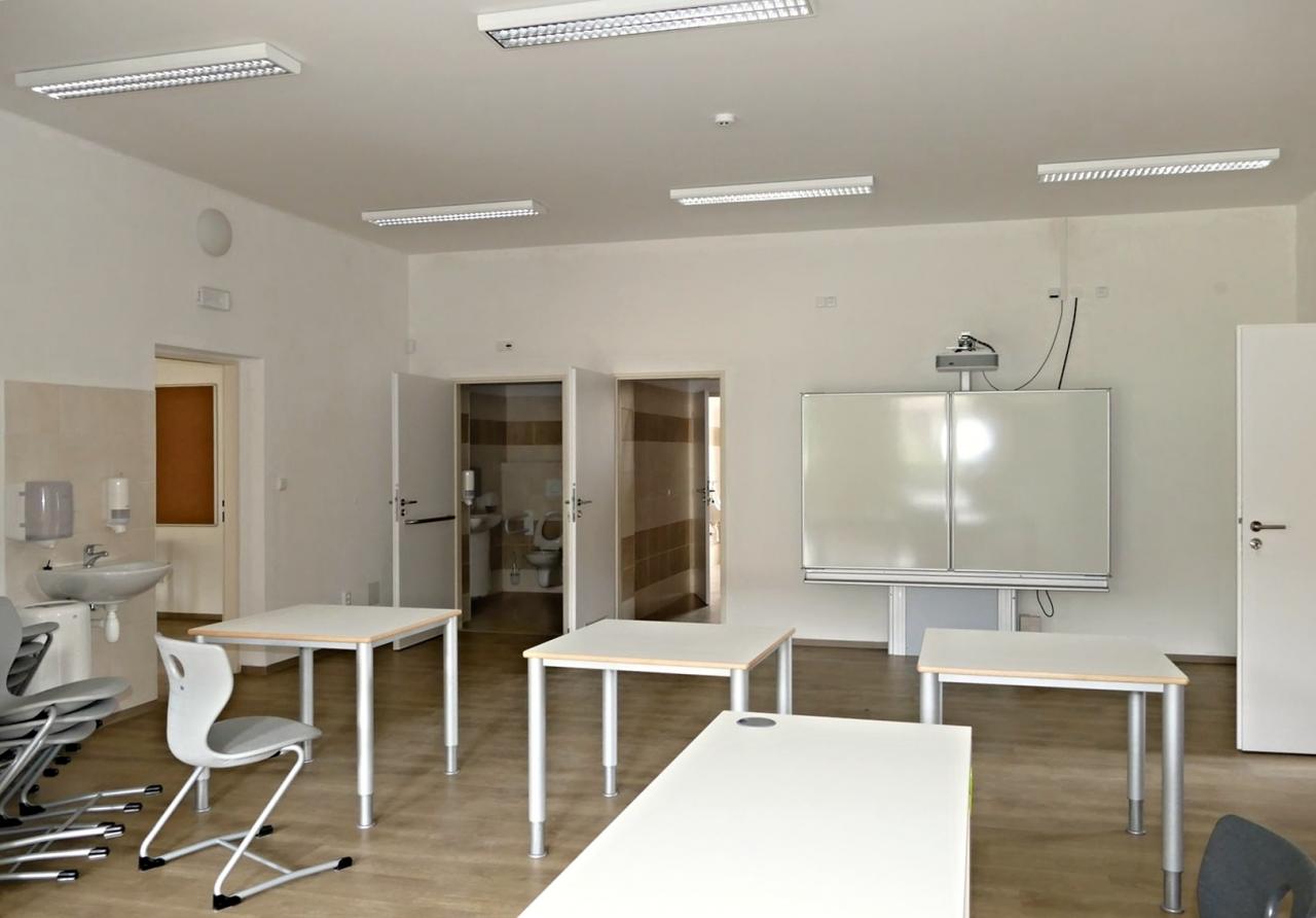 Zázemí pro školní družinu a učebny jinecké pobočky ZUŠ v č. p. 28 (bývalé Moserovy lázně) - přízemí