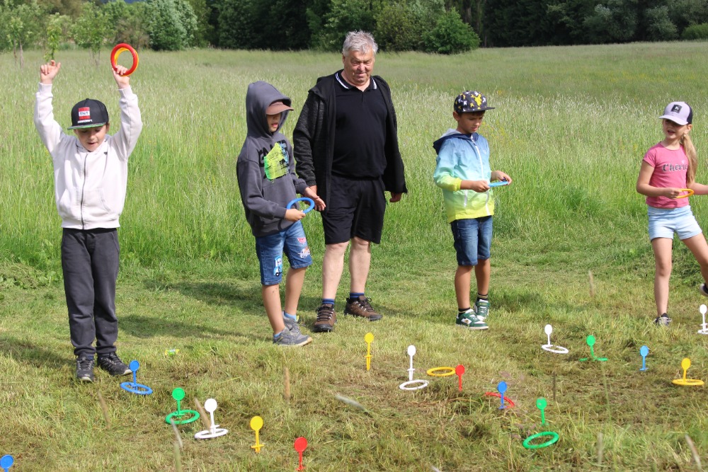 Svoji zručnost prokázali kluci a holky lovem magnetických rybiček, házením tenisových míčků do keserů a hodem kroužků na cíl.