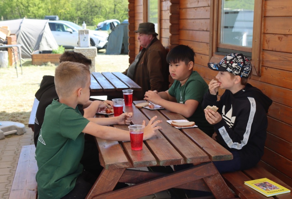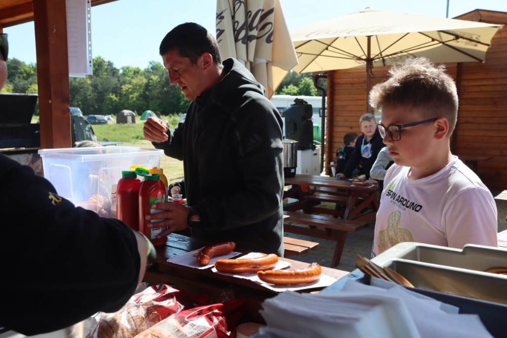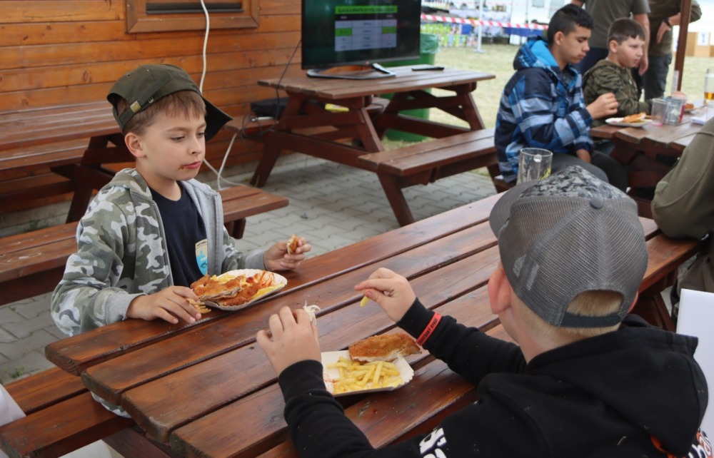 V sobotu dostaly děti k večeři hranolky a obří kuřecí řízek, o který se postaral náš partner Maso Třebovle, podávaly se i palačinky s marmeládou. Na snídani byly k dispozici párky, míchaná vajíčka, závin a čaj, malinovka tekla po oba dny proudem, takže o děti bylo se vším všudy postaráno.