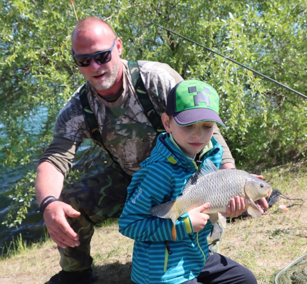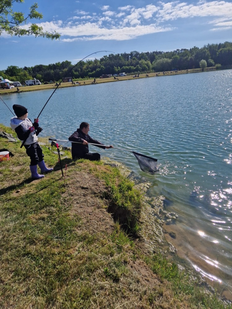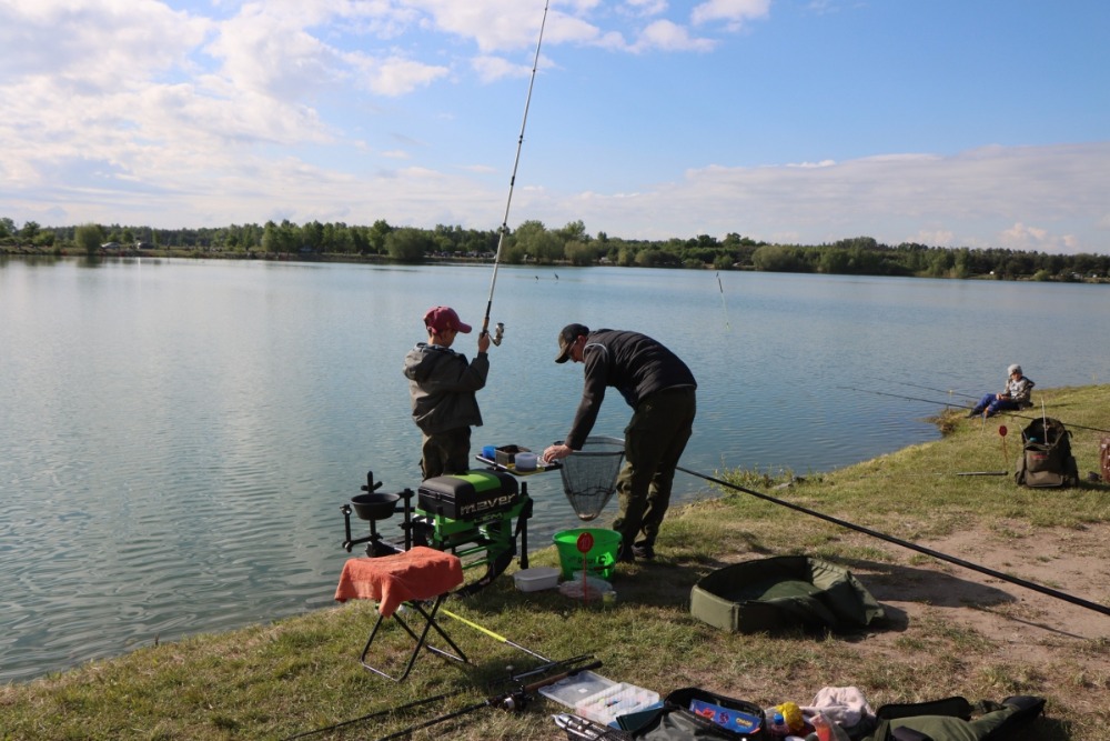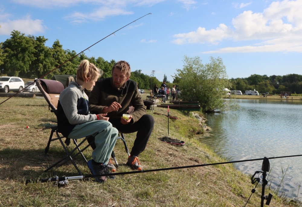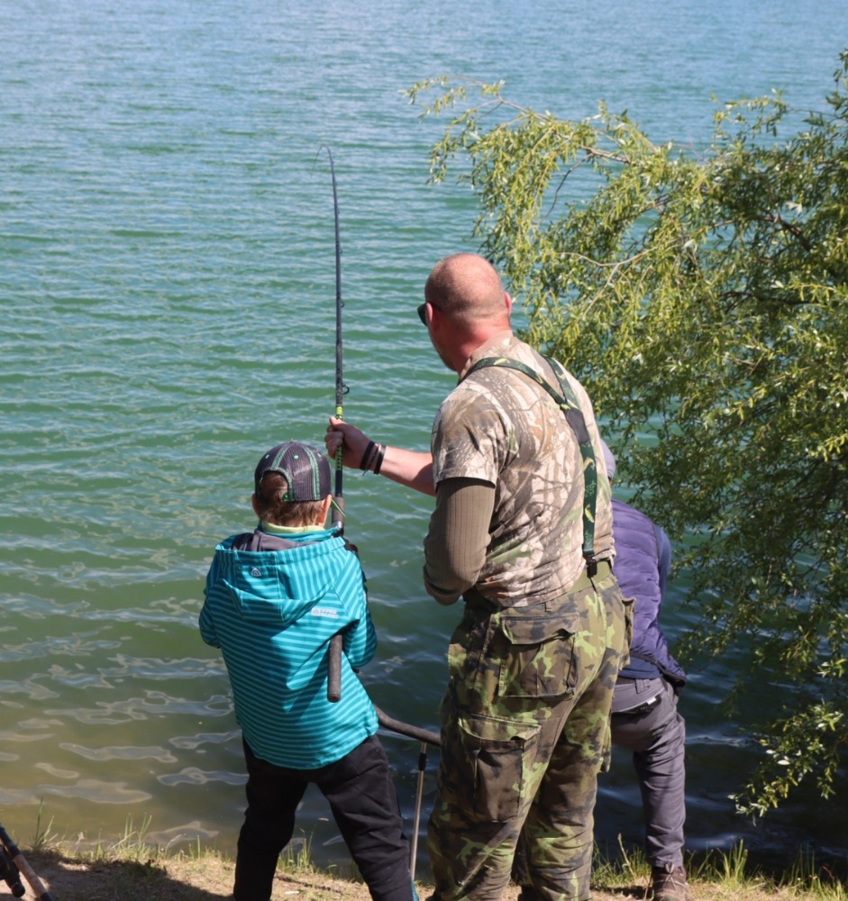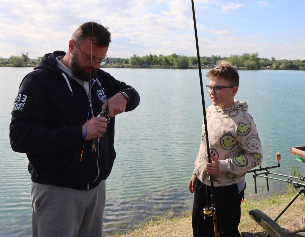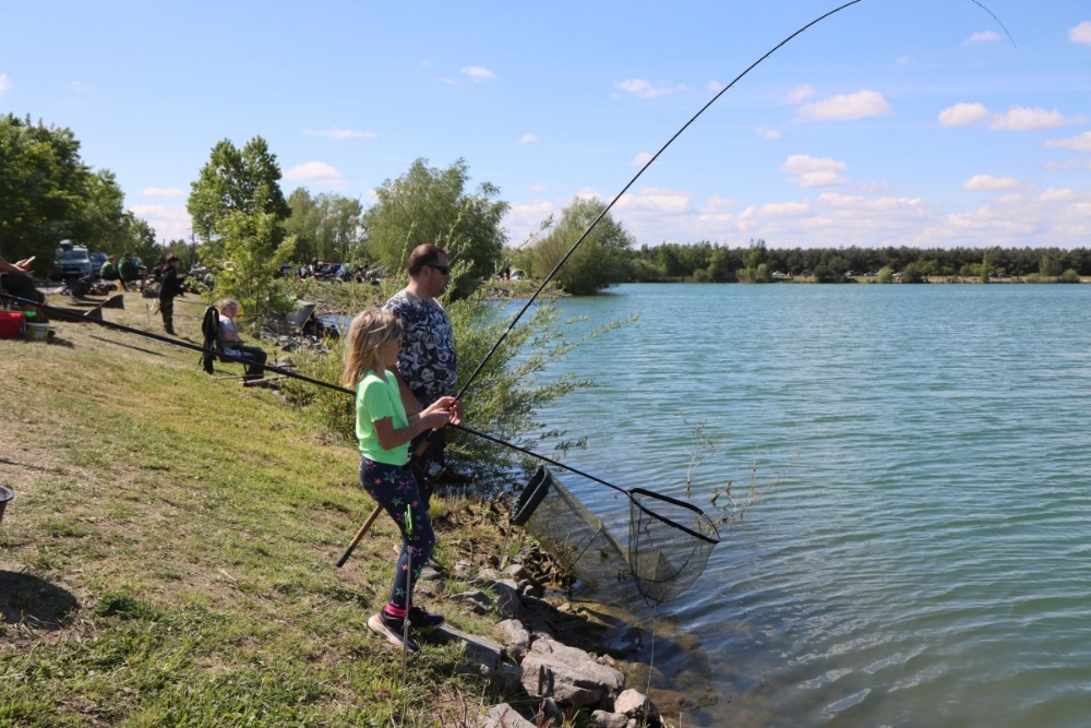Téměř 70 dětí trávilo noc na pískovně ve stanech a bivacích se svými rodiči nebo vedoucími kroužků, takže si rybářský víkend pořádně užily.