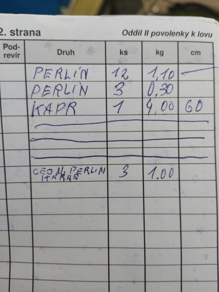 Zadrženy byly tři povolenky (ponechán ve vezírku jelec jesen, dále nezapsané ryby v kombinaci s nepředložením RL a nedostatečné vyplněné povolenky), a jako vždy probíhala osvěta, např. které ryby, a jak, a kdy se zapisují do povolenky.