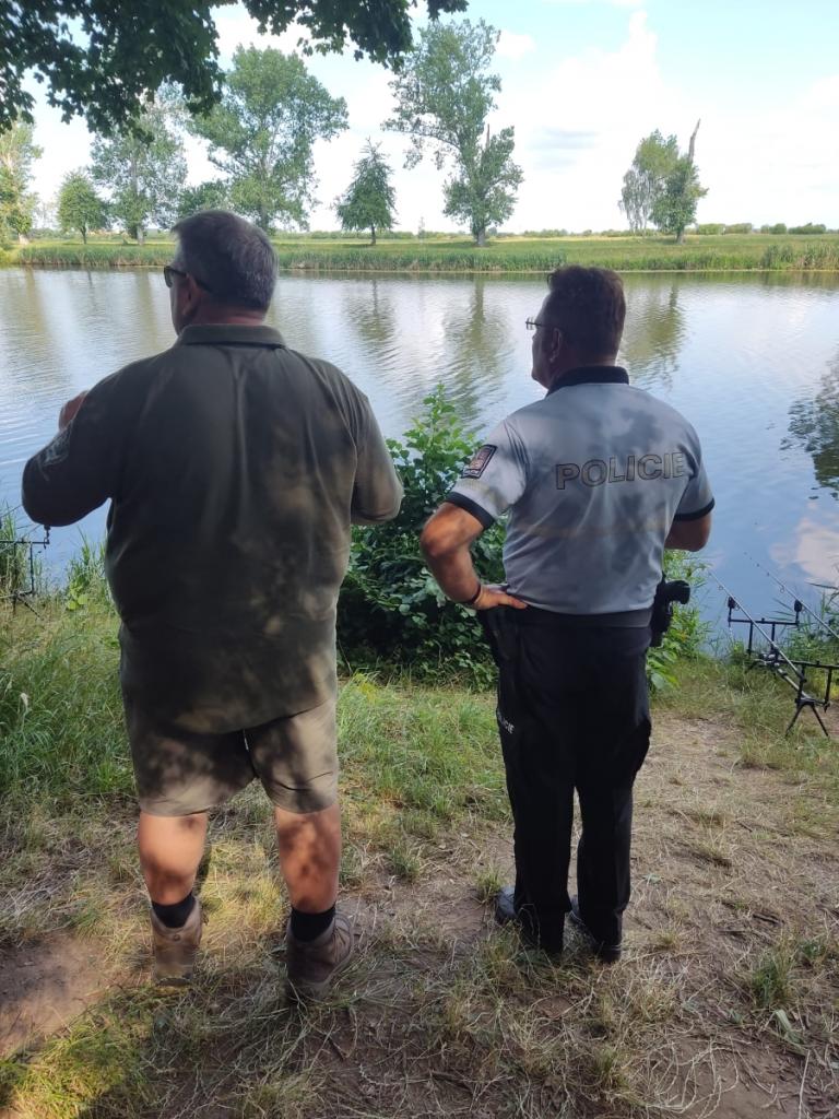 „V minulých dnech byla opět provedena společná kontrola rybářské stráže s PČR Poříčním oddělením Nymburk. Byly zkontrolovány revíry Labe 21, Labe 19, Labe 18, Labe 17 a vodní plochy Mlynařice 3 - Dvorce. Celkem bylo zkontrolováno asi 45 rybářů.