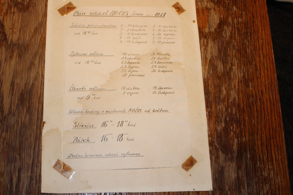 Jsem velice rád, že při třídění materiálu jsem našel písemnost „Plán schůzí MO ČRS Jince na r. 1971“. Naši starší členové si určitě pamatují, jak jsme na domečku dělali výborové schůze, posezení a v kuchyni se i vařilo. Venku se také udily ryby. Toto všechno už je minulostí.