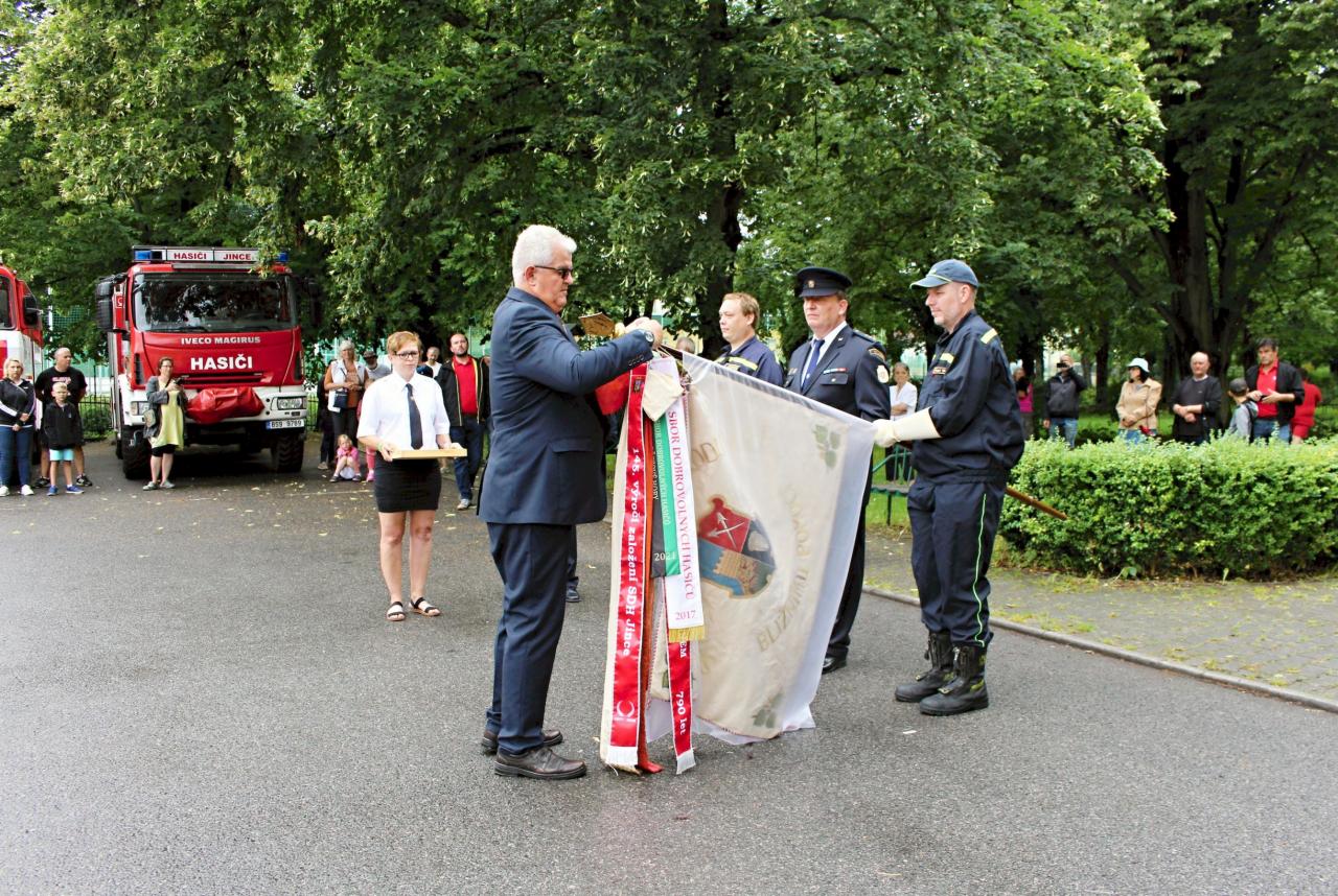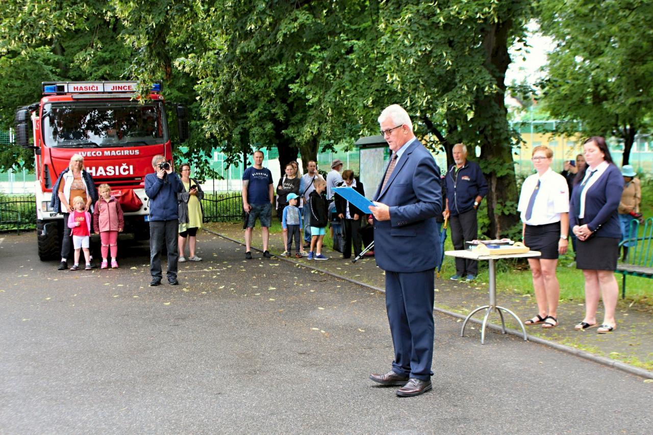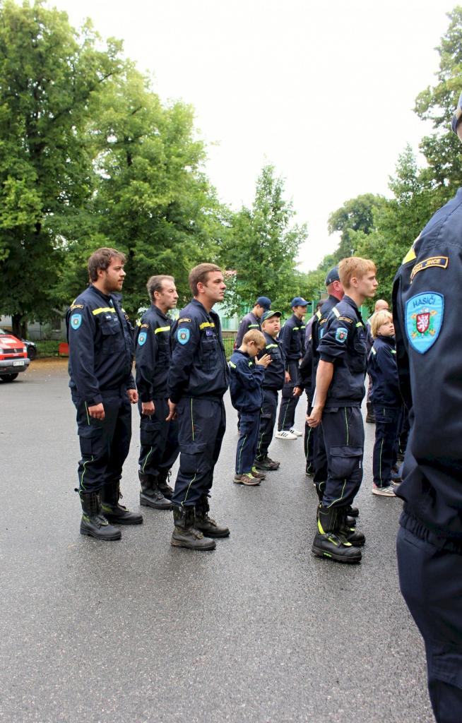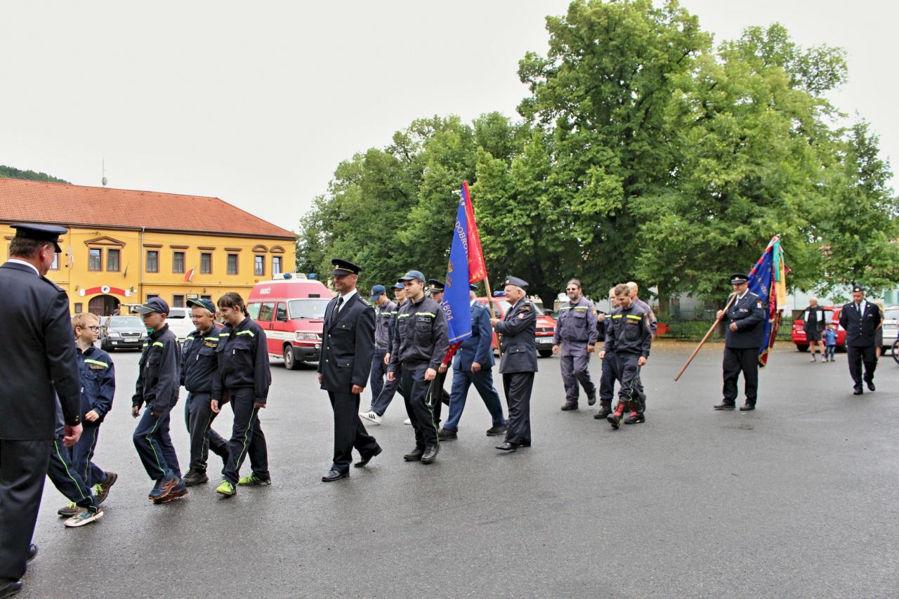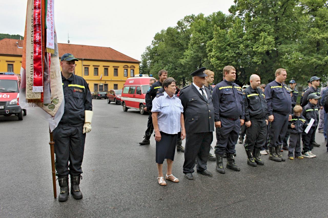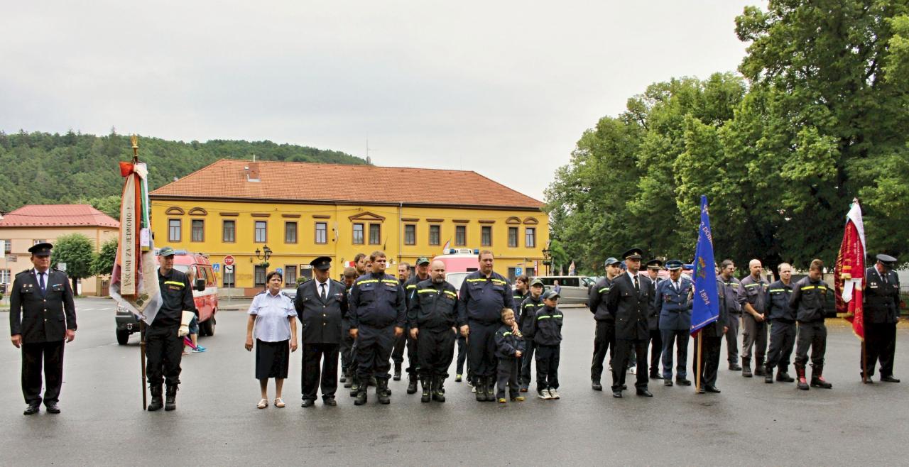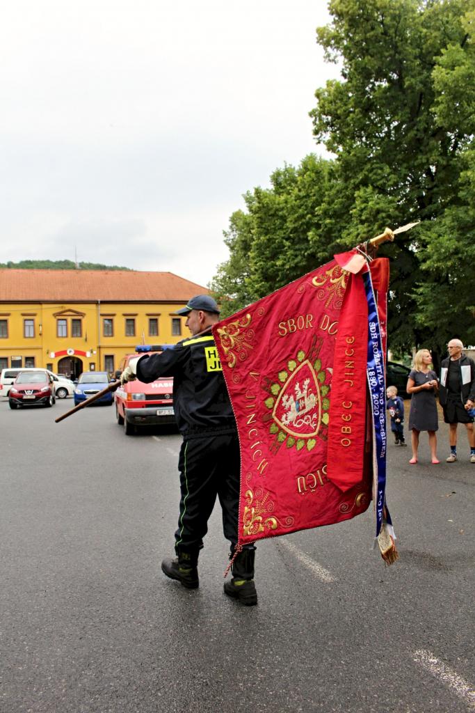 Slavnostní nástup hasičů na náměstí v Jincích