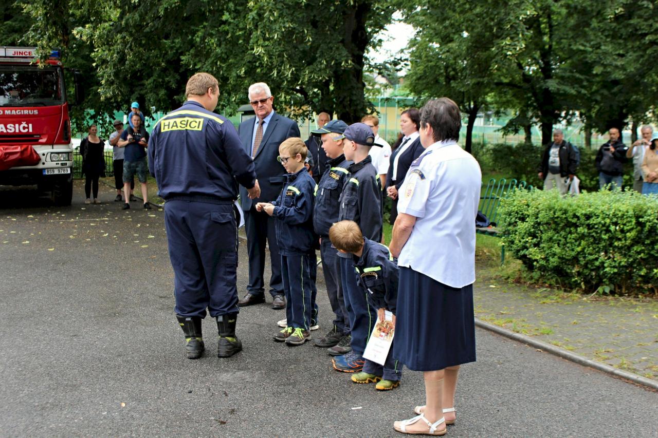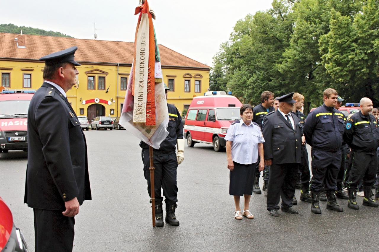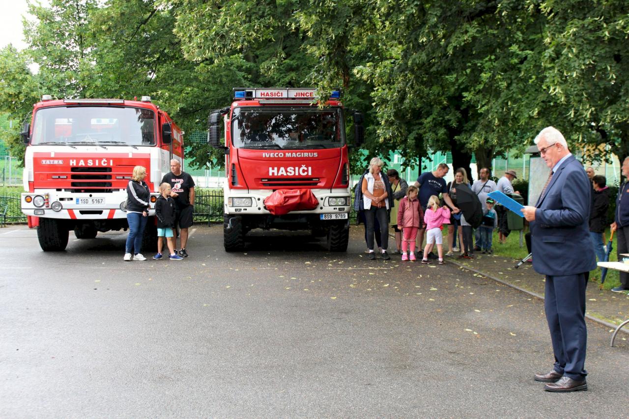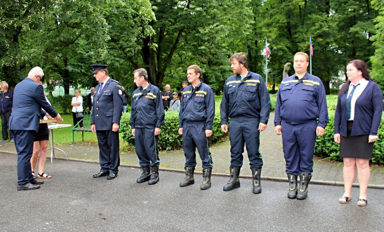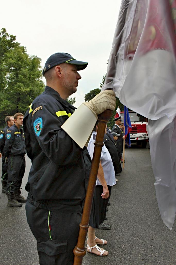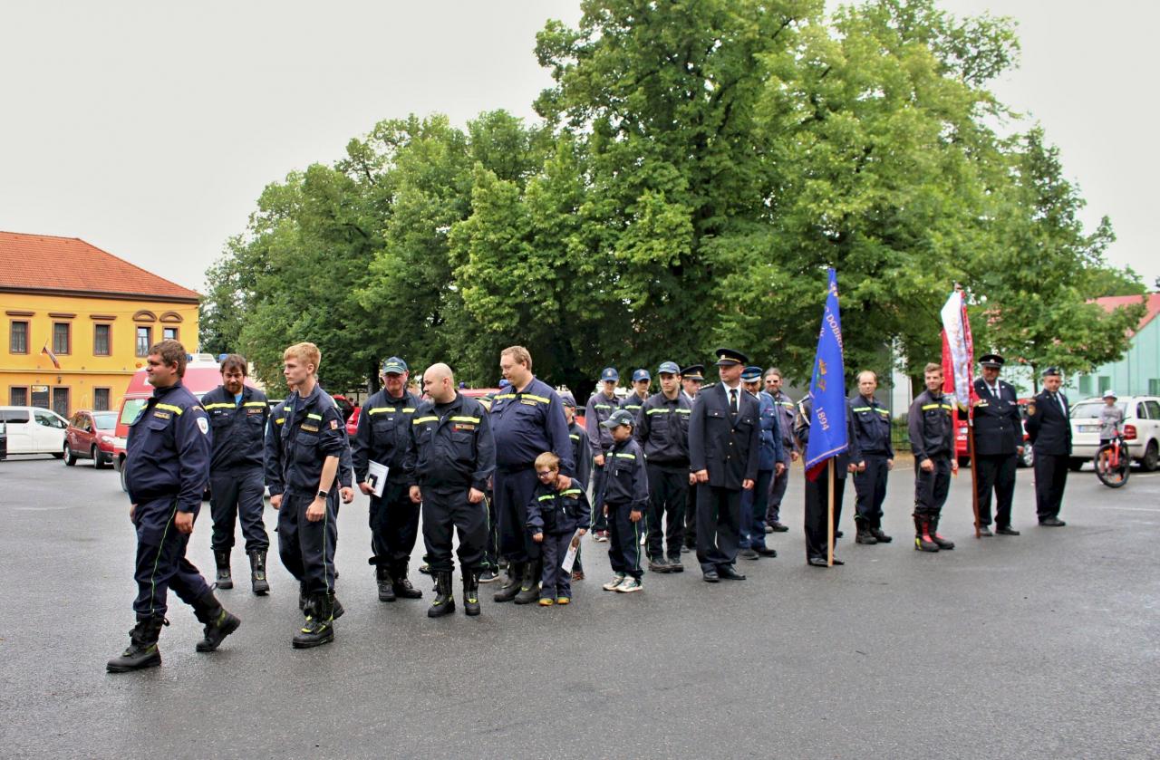 Slavnostní nástup hasičů na náměstí v Jincích