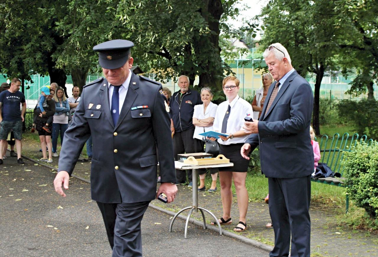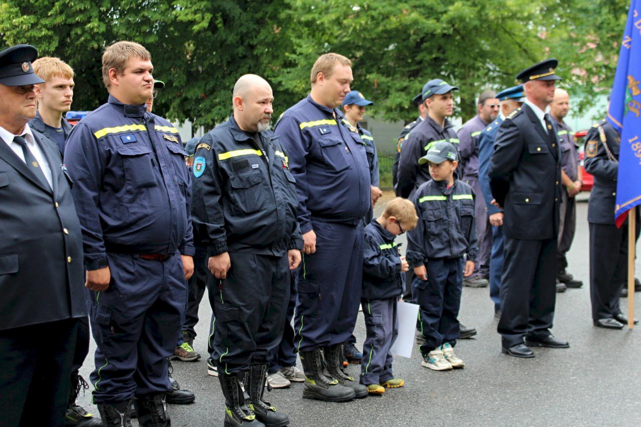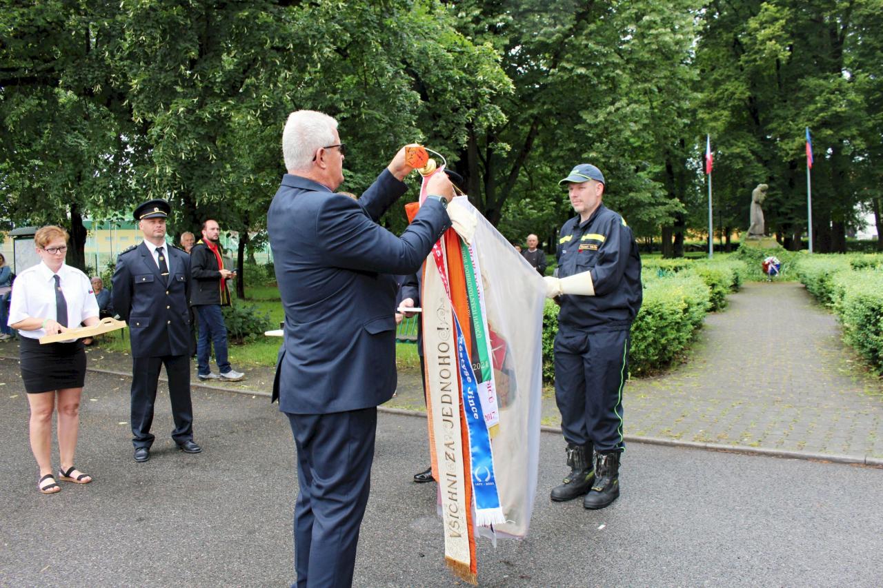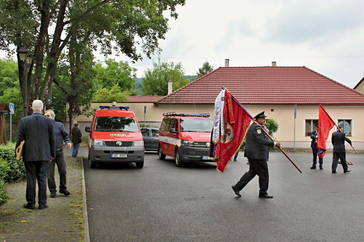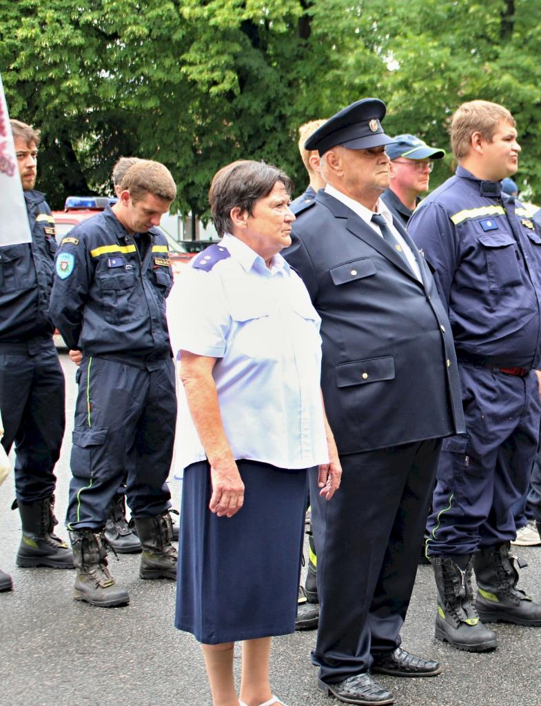Slavnostní nástup hasičů na náměstí v Jincích