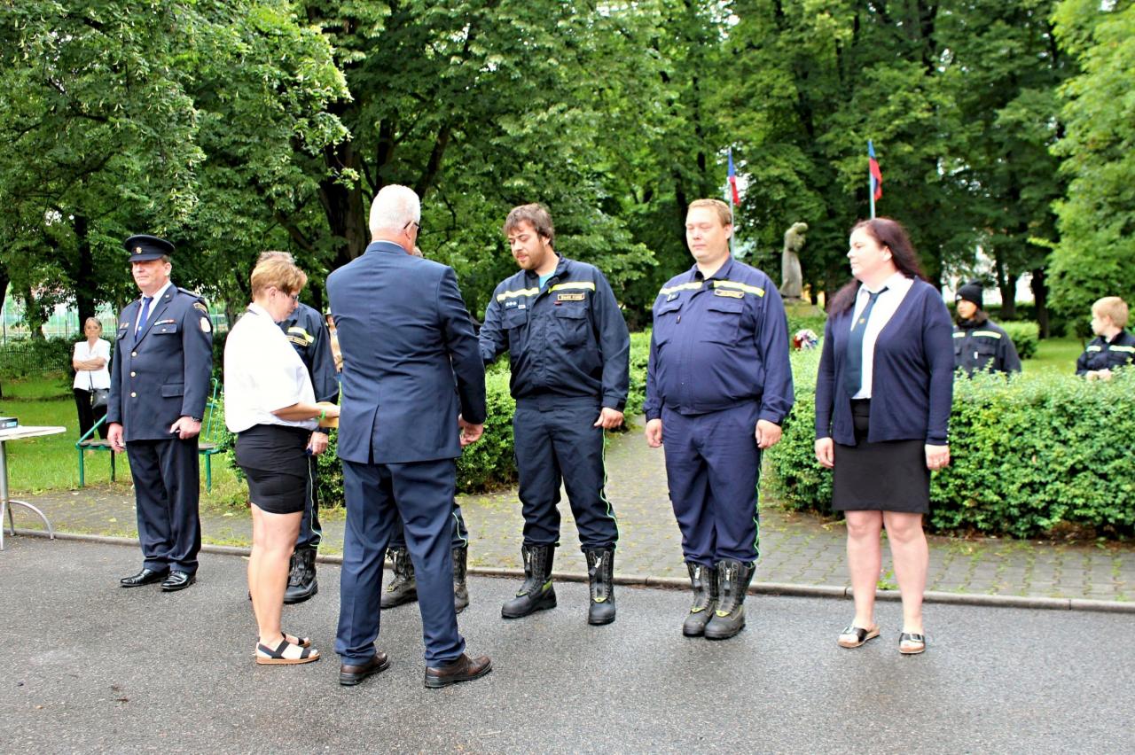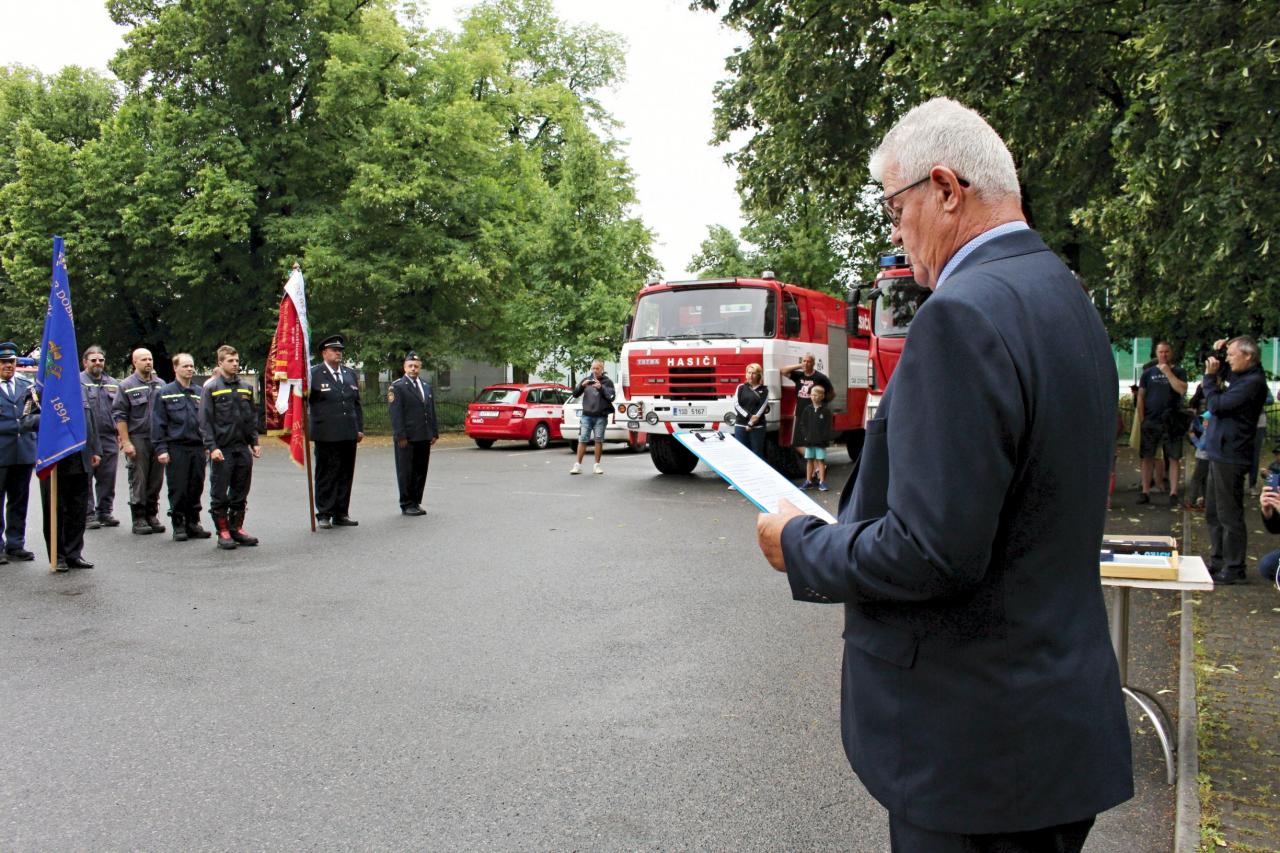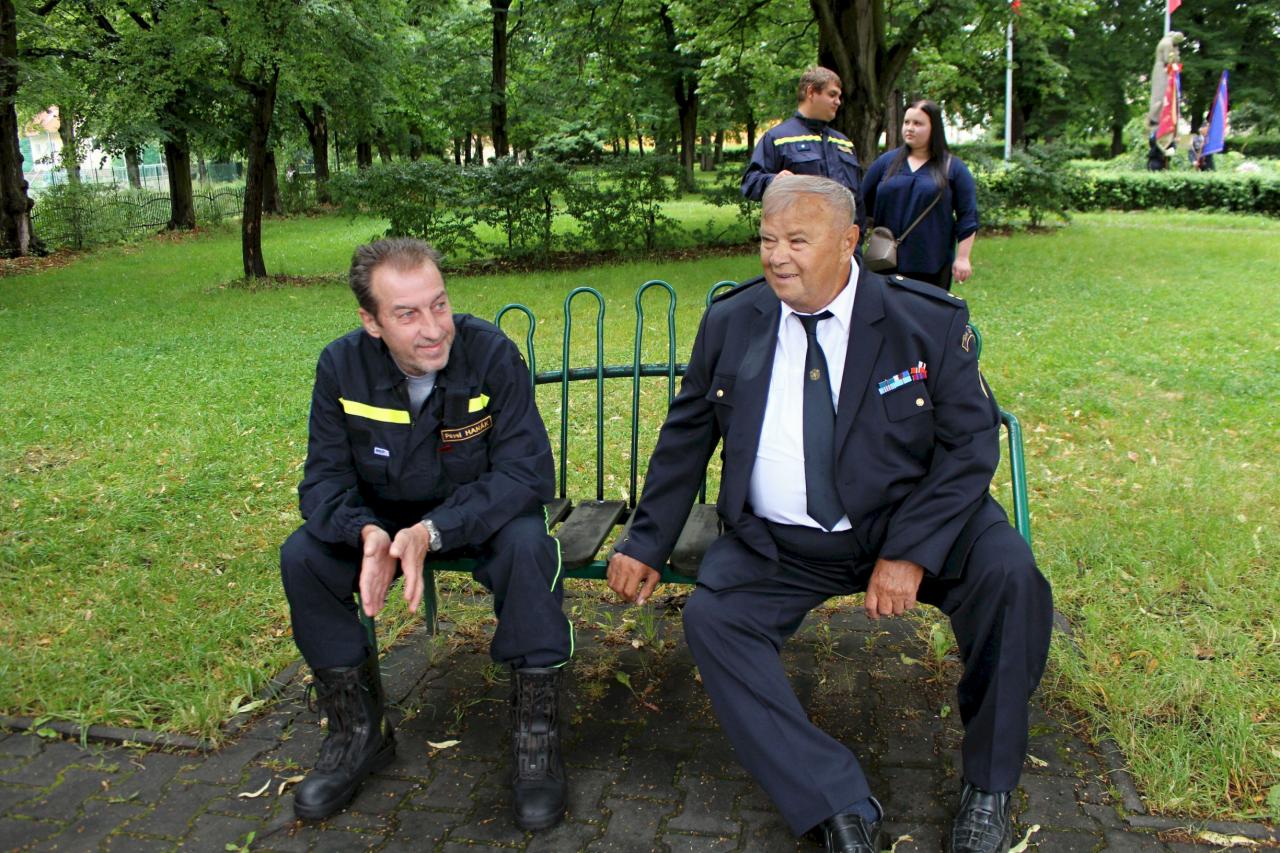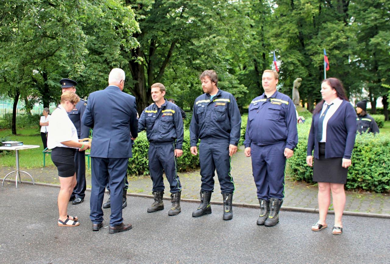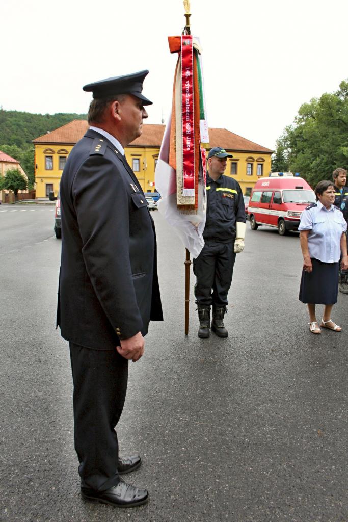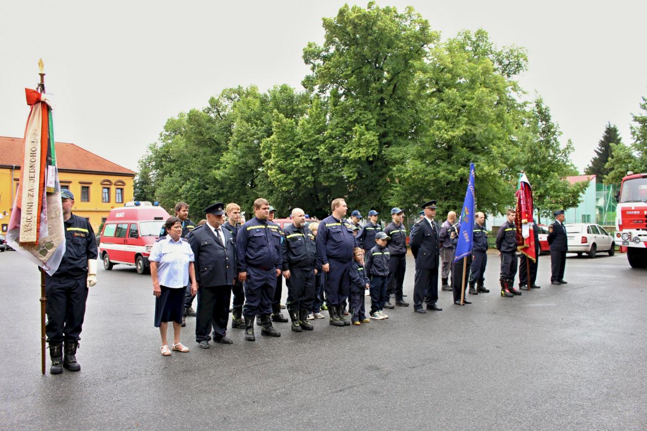 Slavnostní nástup hasičů na náměstí v Jincích
