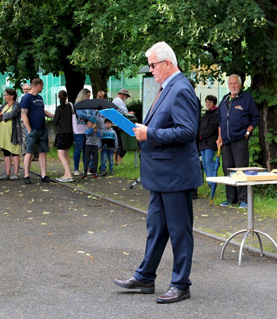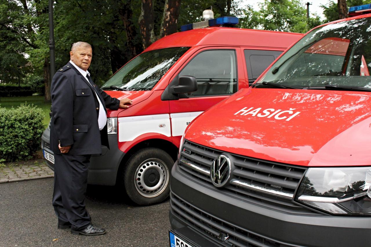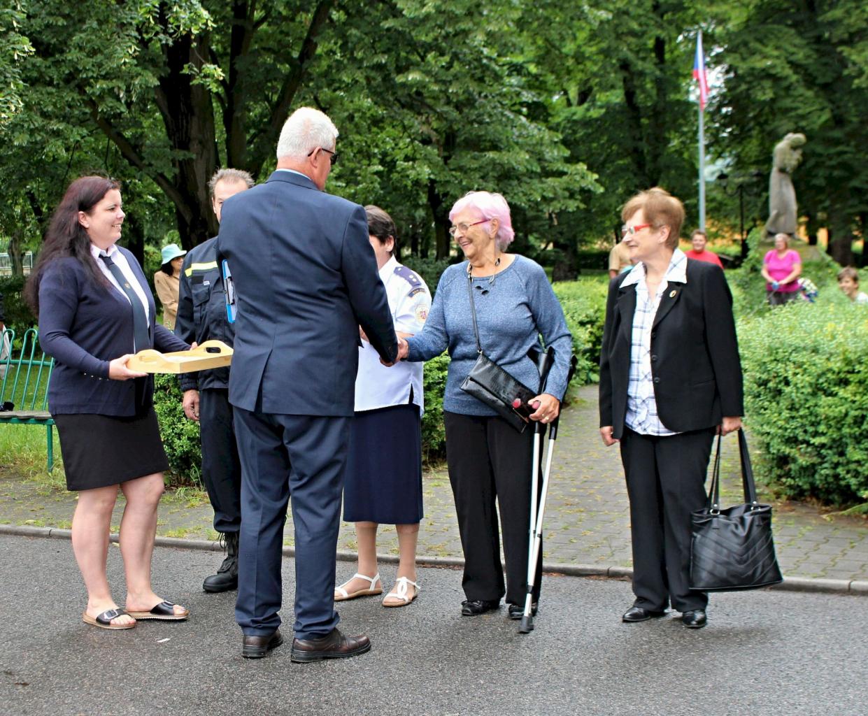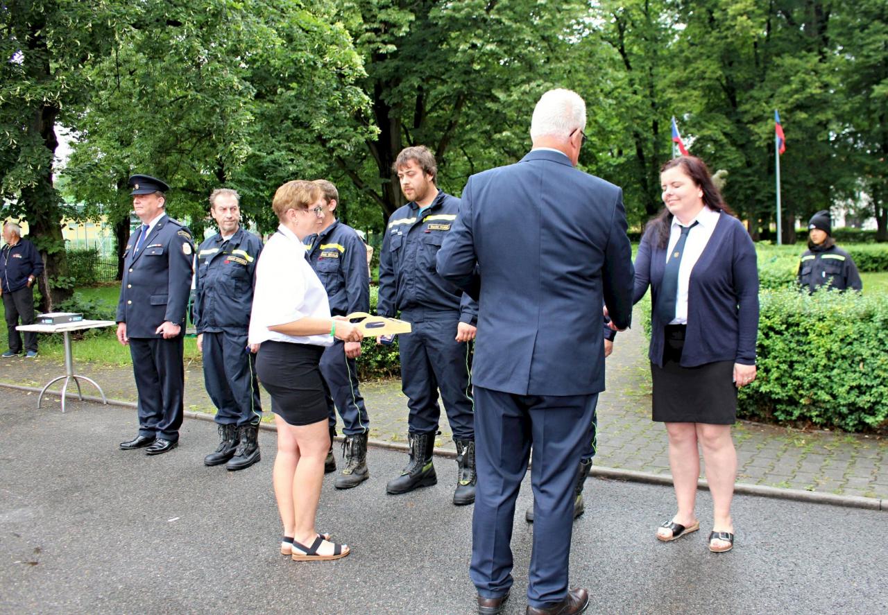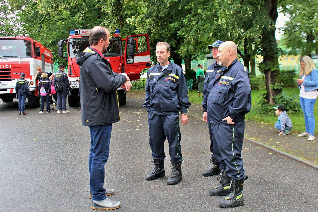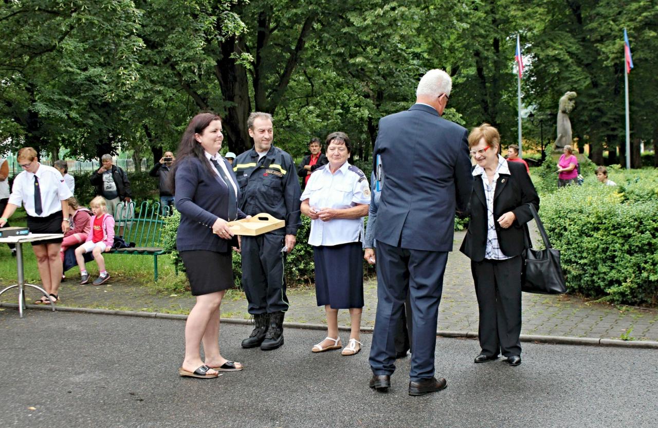 Slavnostní nástup hasičů na náměstí v Jincích